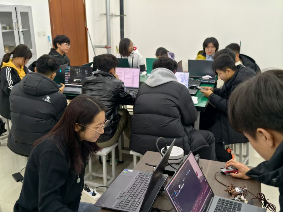 机械创客社团面向全校机械相关专业学生开放,聚焦机械设计、电控研发、视觉应用等多个前沿专业方向,常态化开展各类兼具专业性与实践性的特色活动。在社团发展初期,成员们曾遭遇诸多挑战:在机械操作方面,部分成员对切割机、机床等设备及相关配套软件的运用不够熟练,影响了实践项目推进效率;电控研发领域,单片机嵌入式技术学习门槛较高,不少成员面临知识理解不深入、实际操作难上手的困境;视觉应用方向,算法知识更新迭代快,学习进度难以契合实践项目的实际需求。面对这些难题,社团成员们并未退缩,而是齐心协力、互帮互助,利用课余时间深耕钻研,主动向专业老师请教,在一次次实验与调试中积累经验、突破瓶颈。凭借这份执着与坚持,社团成员成功斩获第十八届全国三维数字化创新设计大赛“华中数控杯”工业协作机器人及数字孪生创新应用专项赛省赛二等奖,用实力证明了社团实践育人的显著成效。