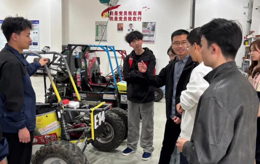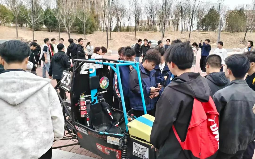 晋速车队队员结合备赛中的技术困惑,与两所院校的技术团队展开面对面研讨,逐一对赛车设计、制造、调试全流程的难点问题交流探讨,在实车观摩与实操交流中,直观掌握了巴哈赛车的研发核心与技术要点,为后续赛车优化升级积累了宝贵的实操经验。