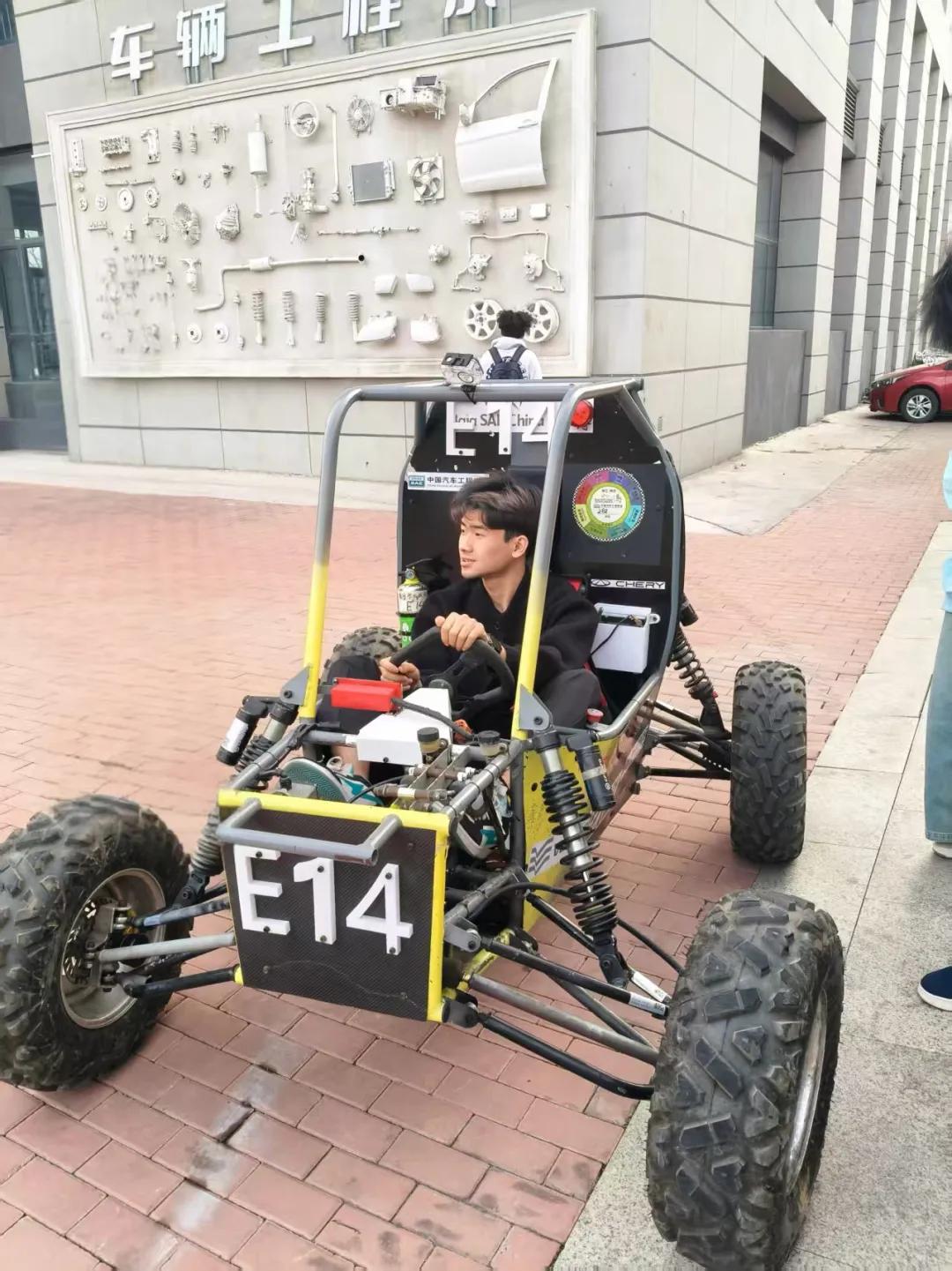 座谈交流结束后,本次活动迎来另一激动人心的实操环节——巴哈赛车E14试驾体验。在专业人员安全规范讲解与对本校E33了解的双重保障下,晋速成员完成了巴哈赛车试驾体验,亲身感受了其对于操控性能、动力输出与越野适配性,直观掌握了赛事车辆的驾驶技巧与操控逻辑,对巴哈赛事的竞技特点、车辆调校逻辑有了更具象、更深刻的认知。