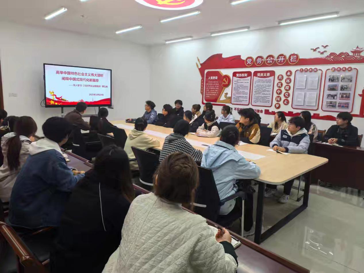 会议伊始,韩丽娟老师以理论解读为核心,为全体党员系统梳理《习近平谈治国理政》第五卷的出版背景、核心内容及重要意义,简要介绍马克思主义中国化时代化最新成果。她围绕马克思主义中国化时代化最新成果展开讲解,结合“中国式现代化”重大课题,帮助党员们精准把握新时代赋予的使命任务,清晰认知国内外发展新形势。接着,韩丽娟老师带领党员同志们深入学习习近平新时代中国特色社会主义思想的最新理论成果,重点解读总书记在改革发展稳定、内政外交国防、治党治国治军等领域的最新论述,进一步阐释著作的核心脉络、思想内核与重大理论创新,为后续交流奠定坚实理论基础。随后,各支部党员以“学思践悟”为主题展开热烈研讨,分享学习心得与实践思考。其中,智能制造工程学院学生党支部代表郭枝梁同志率先发言,他表示:“《习近平谈治国理政》第五卷的出版发行,为我们系统把握党的创新理论发展脉络、准确理解新时代新征程党的使命任务提供了权威指引,必须深刻领会其中蕴含的原创性理论贡献与思想精华,才能真正做到学懂弄通做实。”活动最后,韩丽娟老师对本次党日活动进行总结发言,她呼吁全体学生党员要以此次学习为契机,立足自己的专业领域,把学习成果转化为坚定的理想信念和务实的行动自觉,在强国建设的征程中挺膺担当,让青春在理论指引与实干奉献中绽放光彩。