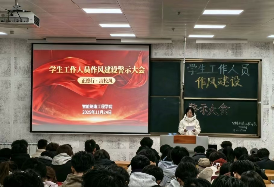 为强化学生工作人员的责任意识与纪律观念,通过警示教育纠治作风问题,推动其践行服务同学的核心职能,保障学生组织规范、廉洁、高效运行。11月24日,智能制造工程学院在南楼326组织召开了2025年秋季学生工作人员作风建设警示大会。各部门负责人及志愿者参加本次会议。