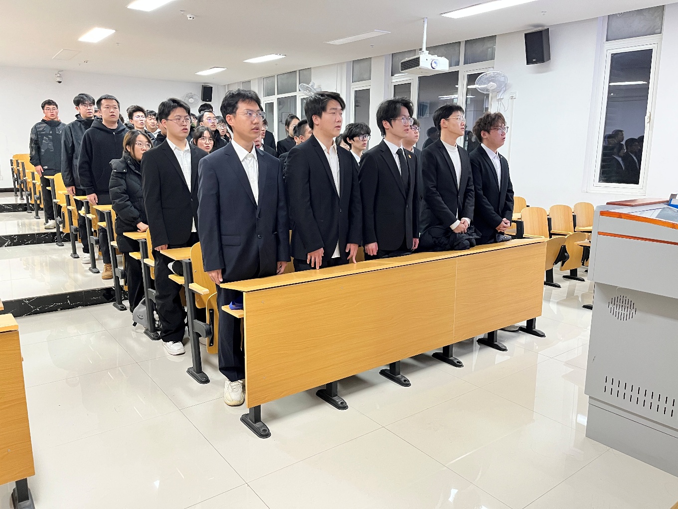 仪式在庄严的国歌声中拉开帷幕,全体青马班成员肃立致敬,歌声嘹亮激昂。随后,第一届青马培训班学生代表侯梦轩分享了自身在理论学习、社会实践中的收获与成长,鼓励同学们珍惜学习机会,做到知行合一。第二期青马学生负责人代表郭旭华表态发言,承诺将带领全体学员勤学善思、奋勇争先,以实际行动践行青年担当。学院团委负责人刘晋寄语全体学员,要坚定马克思主义信仰,筑牢思想根基,将个人发展融入国家建设大局,在专业学习和实践创新中锤炼过硬本领。仪式最后,全体成员齐唱中国共产主义青年团团歌,青春的旋律中饱含着奋进的力量。