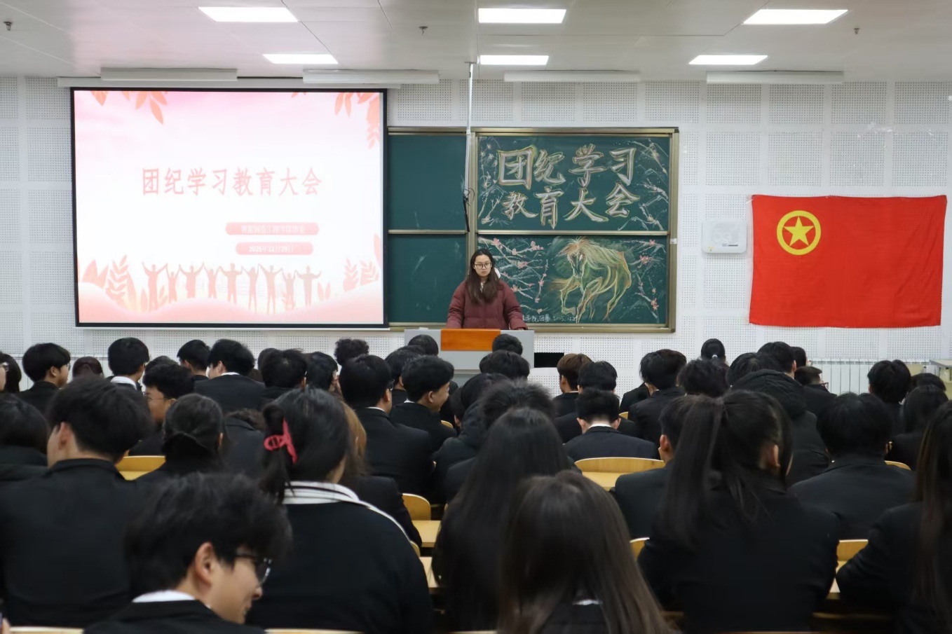 此次团纪学习教育大会,有效强化了全院团员的纪律观念与规矩意识,帮助团员厘清思想认知误区,补足精神之钙。既为团员成长划定行为边界,也为其树立奋进标杆,进一步凝聚了团组织向心力与战斗力,为学院打造风清气正的育人环境奠定基础,助力团员以严明纪律、过硬作风投身学习实践,成长为堪当时代重任的青年人才。