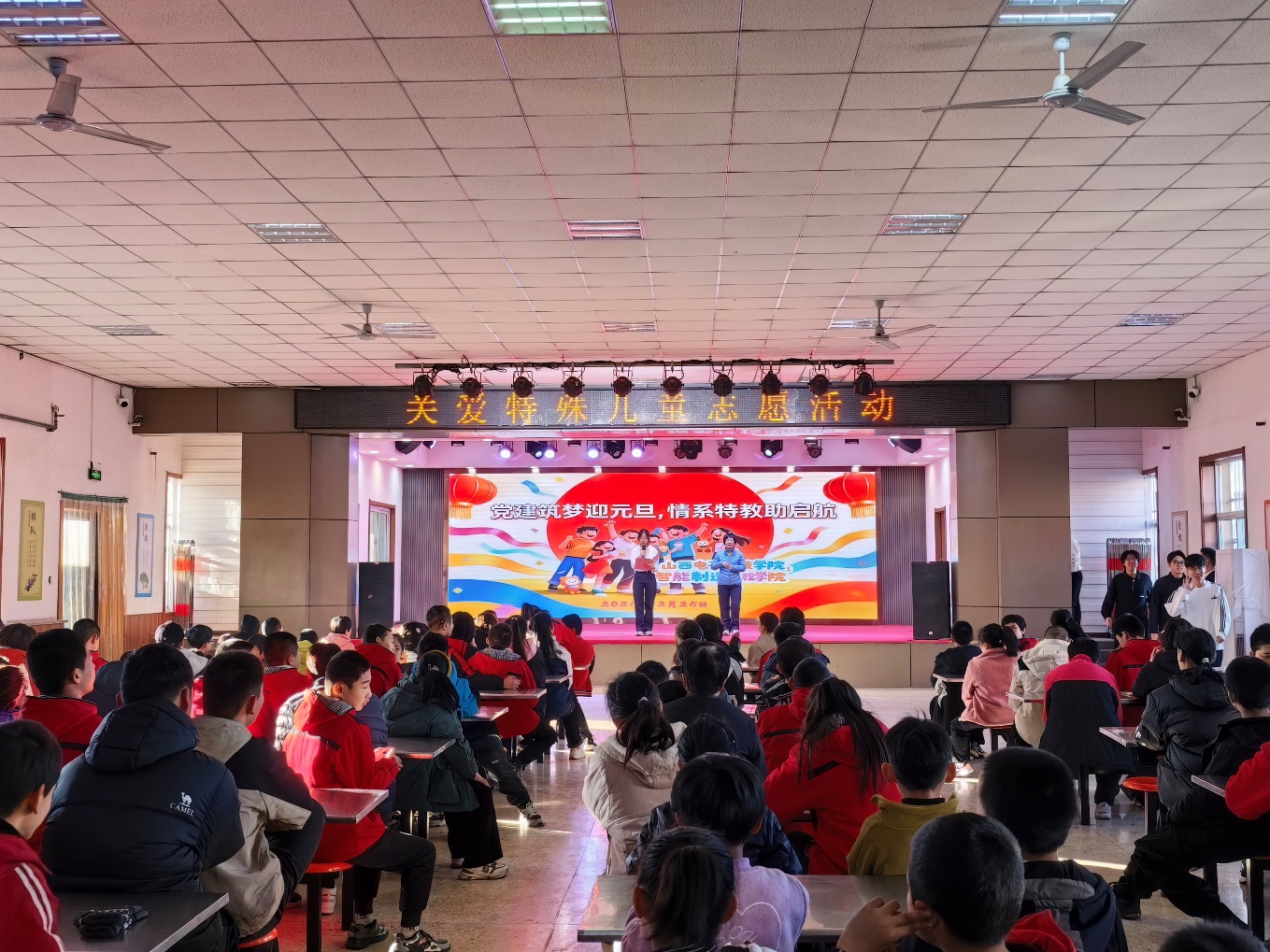 为深入践行党建引领志愿服务精神,传递对特殊儿童的关爱与温暖,在2026年元旦即将来临之际,2025年12月25日,智能制造工程学院组织青年志愿者赴特教学校开展 “党建筑梦迎元旦,情系特教助启航” 主题联欢活动。学院志愿者与特教学校师生齐聚一堂,以才艺表演、互动联欢的形式,共同迎接新年的到来,用青春力量为特殊儿童的成长之路增添温暖底色。